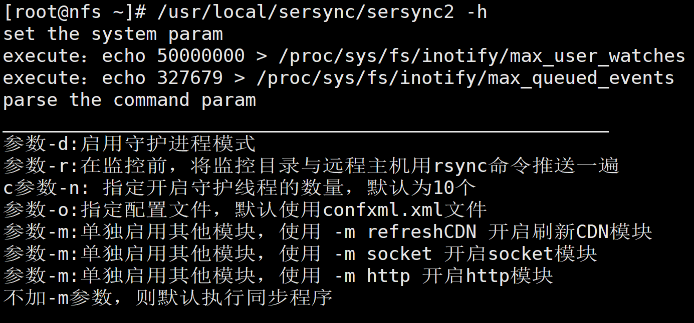 /usr/local/sersync/sersync2 -dro /usr/local/sersync/confxml.xml